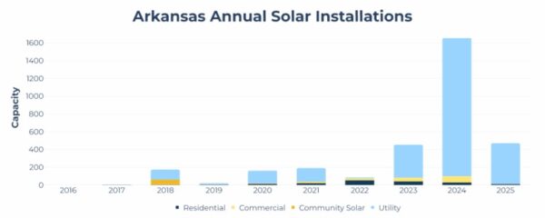 Arkansas’ 5th per capita and 16th in capacity for utility-scale solar is large in part the surge in growth it experienced last year.