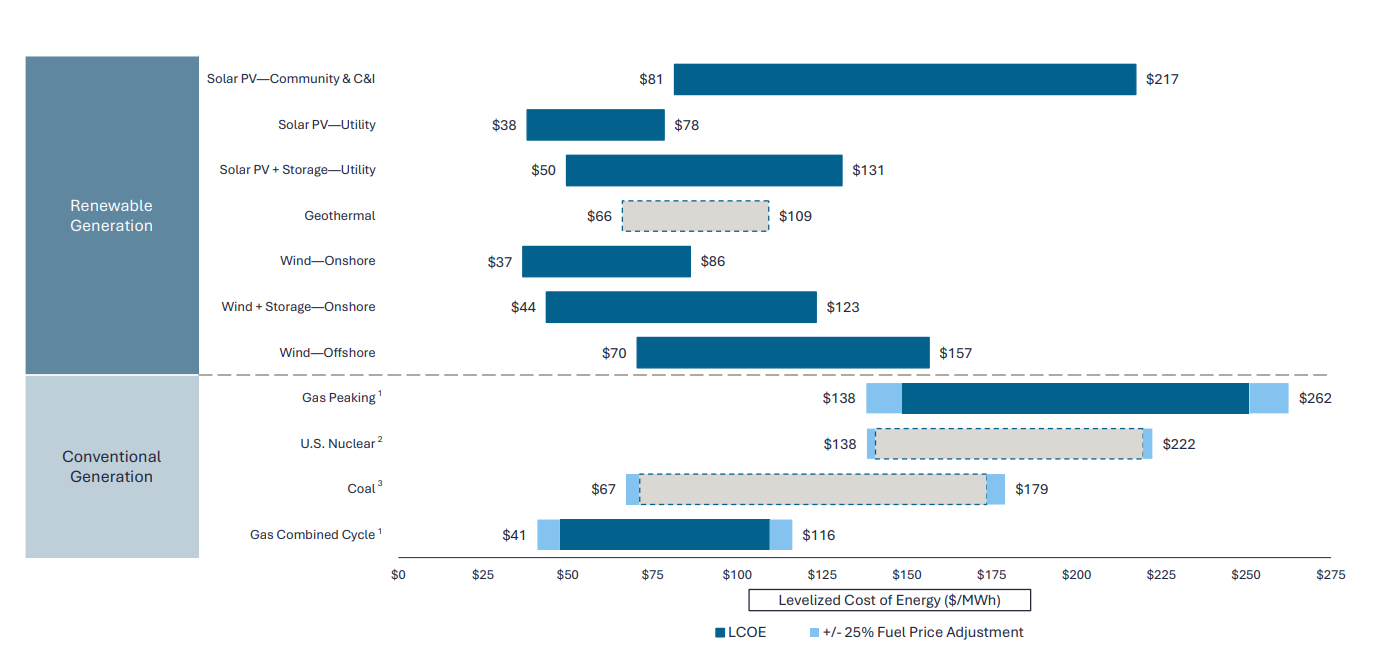 “On an unsubsidized $/MWh basis, renewable energy remains the most cost-competitive form of generation. As such, renewable energy will continue to play a key role in the buildout of new power generation in the U.S.,” said the report. “This is particularly true in the current high power demand environment, where renewables stand out as both the lowest-cost and quickest-to-deploy generation resource.”