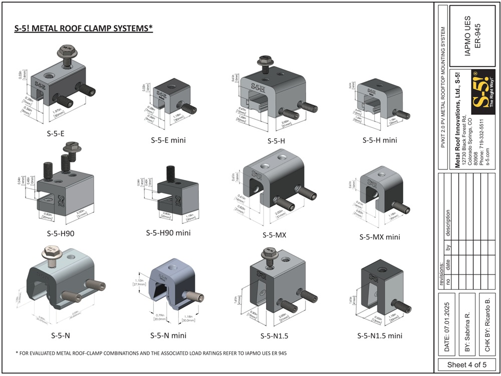 By using different S-5! roof attachment units, as shown in the featured image, the same PVKIT can be adapted for most metal roof types.