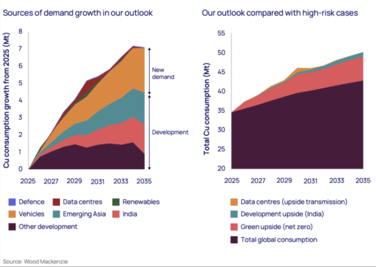 Wood Mackenzie says the broader energy transition is “fundamentally reshaping copper consumption patterns”, with the shift to renewables expected to require an additional 2 Mtpa of copper supply over the next decade.