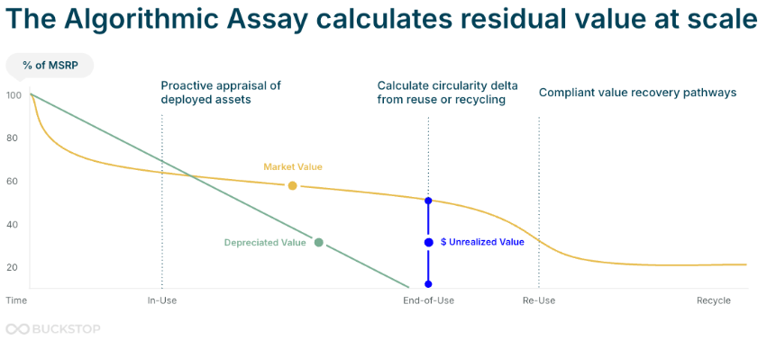 “You can’t manage what you can’t measure, and you can’t sell what you can’t price. There is not a single source of truth that values EOL assets,” he explained. That’s what Buckstop aims to create: a more efficient system that benefits asset owners, EOL processors and stakeholders like lenders by measuring deployed feedstock and helping downstream recyclers recover more material and critical minerals from domestically sourced “urban mined” EOL electronics.