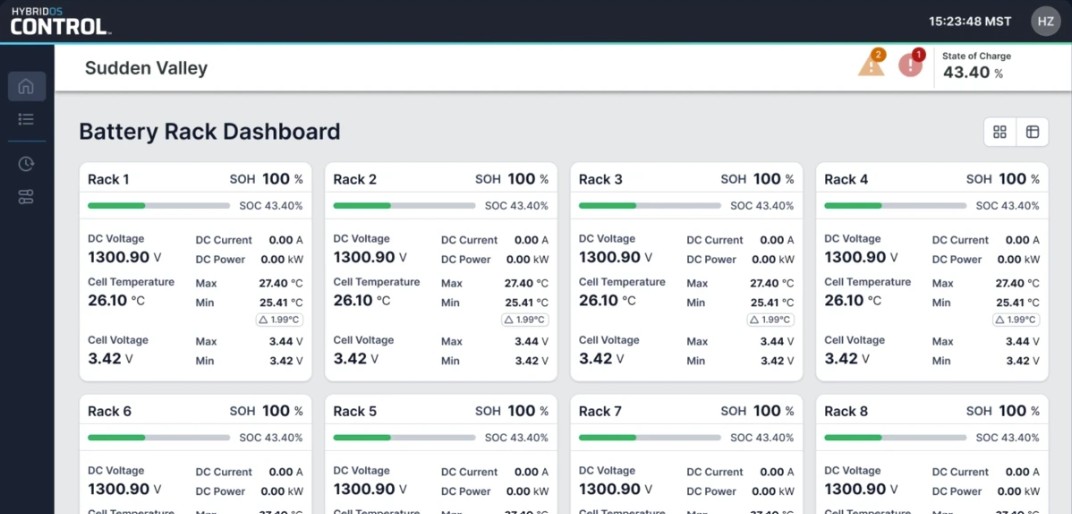 Throughout this process, HybridOS directs communications between each subsystem—from rack to container to inverter—determining how and when the project interacts with the grid beyond the meter. At the same time, the software monitors key metrics such as state of charge, independently from the battery’s own management systems.