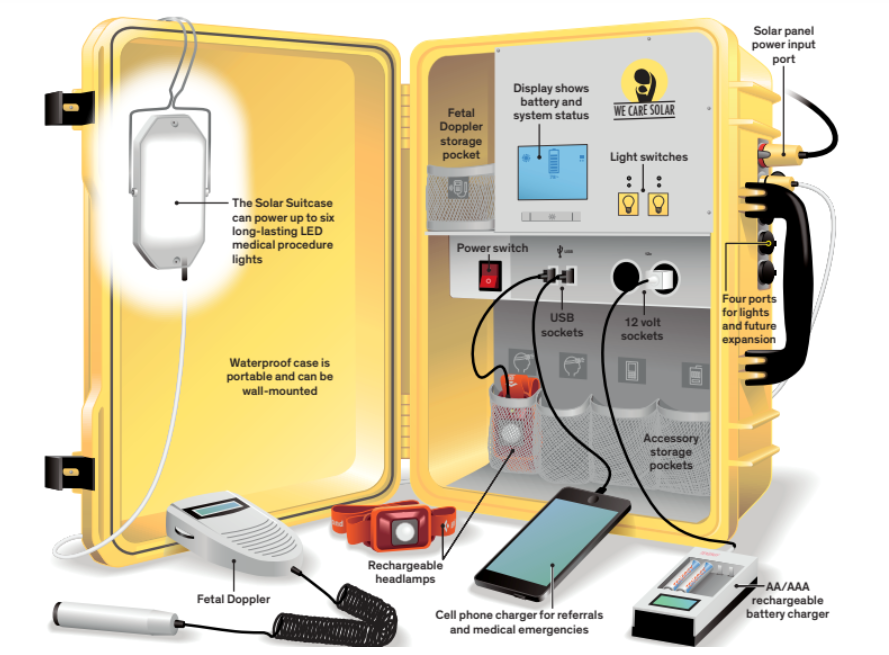 Muhwezi said without light, healthcare providers may be unable to provide safe C-sections or blood transfusions. The solar suitcases can be used in a wide range of medical and humanitarian settings, said We Care Solar.