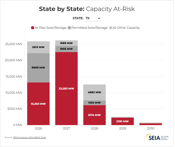 The report from SEIA tracks planned capacity and what is at risk state-by-state on a dashboard here.