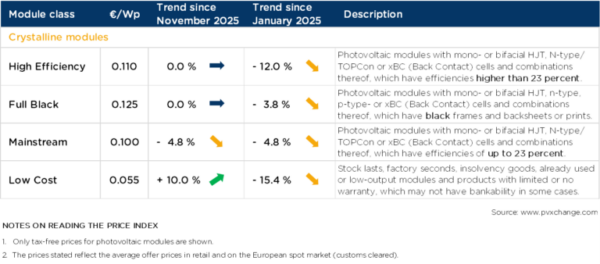 Module prices showed little movement toward the end of the year, suggesting the market may have reached a level where further reductions are difficult. Isolated deviations from the downward trend largely result from urgent sales or inventory clearances and do not indicate a structural shift. Given the substantial losses Asian manufacturers have absorbed for years, many expect an eventual upward price correction. The timing and mechanisms remain unclear. Higher module prices could enable manufacturers to improve quality again, but no major supplier is willing to move first. Large Chinese producers, in particular, fear losing hard-won market share.