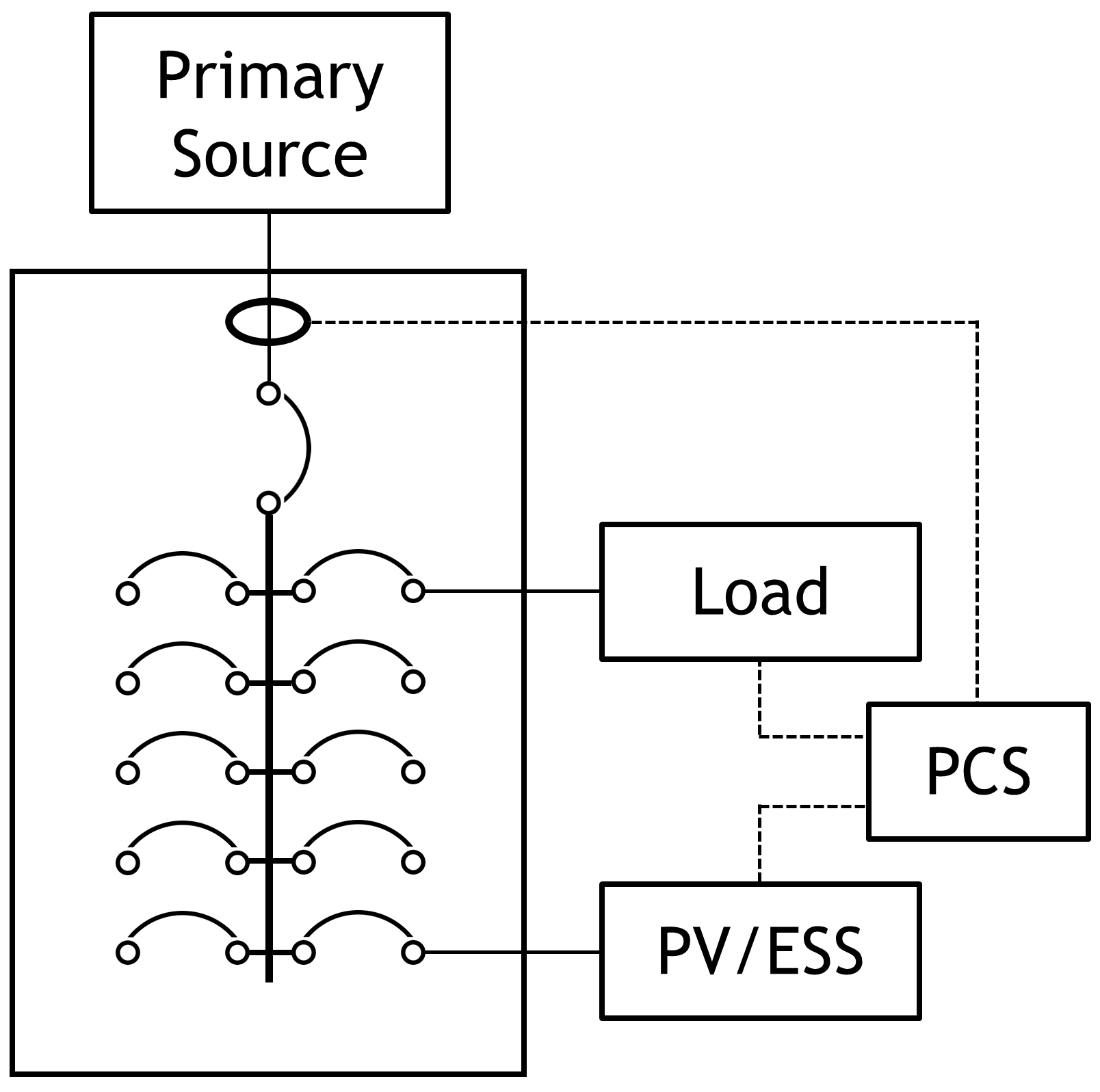 1.A single-source PCS is capable of load management only. This single-source PCS monitors current on the supply conductors from the primary source, and can control a load to prevent overload of those supply conductors and busbar.