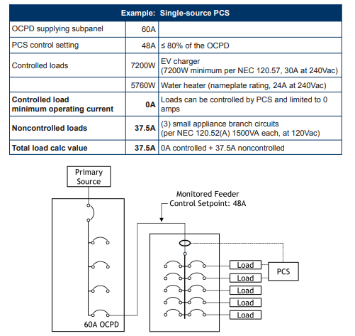 A PCS can be set to actively limit the current and loading on a busbar(s) and/or conductor(s), functionality referred to as its “control setting” or “setpoint.” This enables connections of power sources with more current than what 705.12 would traditionally allow for load-side connections. Why? Because a listed PCS guarantees safety by actively controlling power source current, ensuring the equipment and/or conductor ratings are never exceeded.