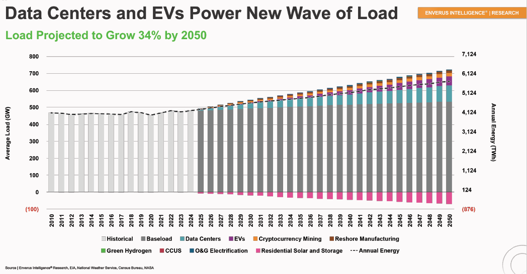 A new EIR report says projects U.S. electricity demand will rise 34% by 2050, intensifying the need for reliable generation as data centers, electrification and industrial load growth outpace new capacity additions. As a result, U.S. power market is no longer optimizing for lowest marginal cost but is optimizing for reliability.