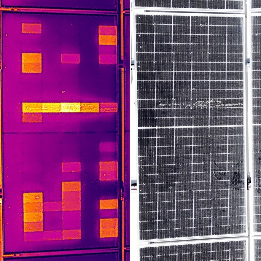 To the plain eye it looks like a dusty module, but through a thermal inspection, hot spots were discovered, likely caused by the dirt built up on the module