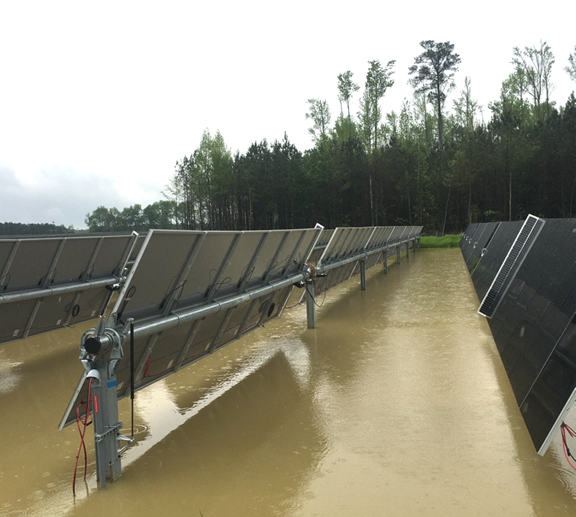 Lack of trenching and stormwater preparedness left this array submerged in water, causing damage to the system and posing a sever safety-risk to onsite personnel