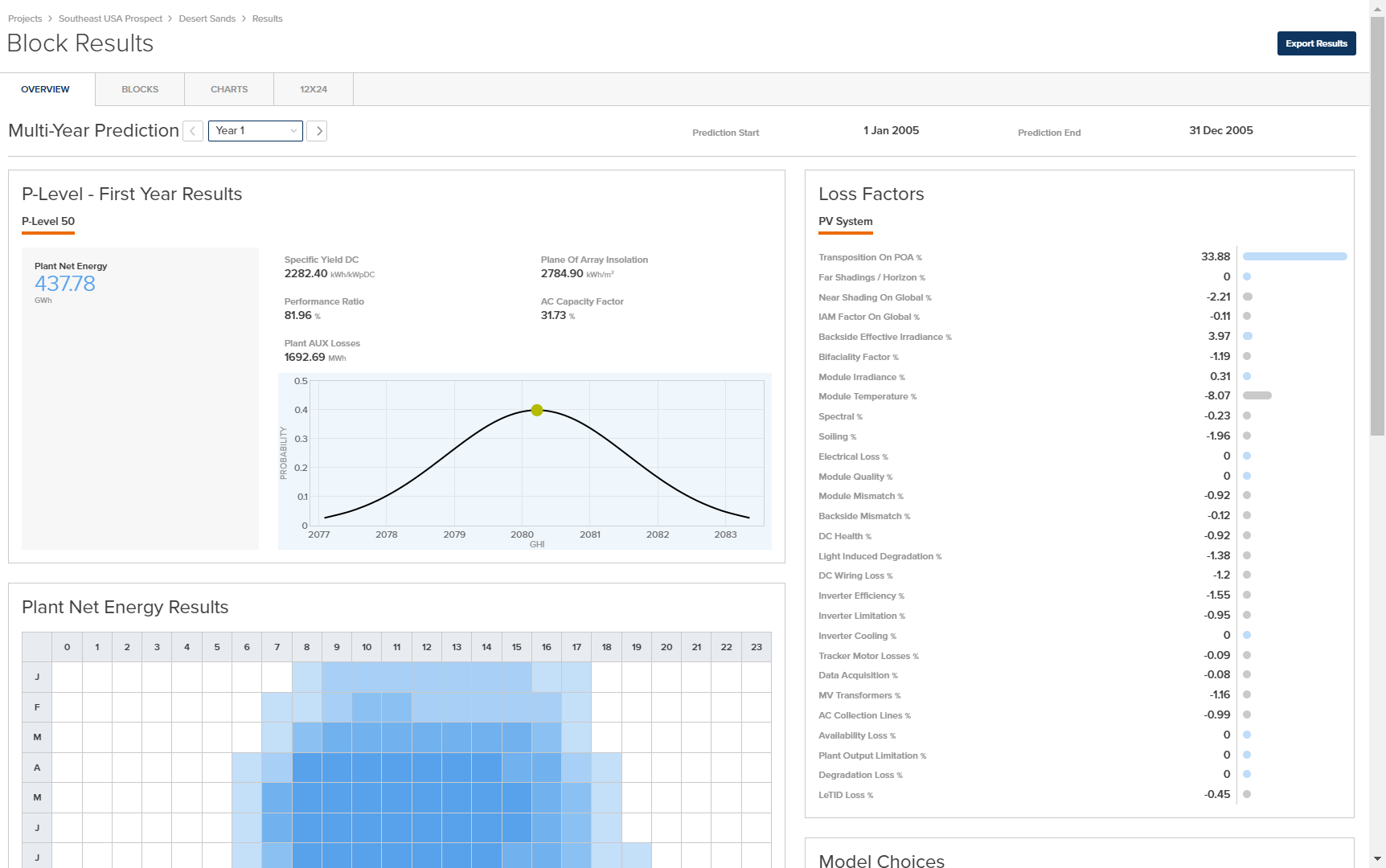 The function of PowerUQ is to analyze factors that introduce variability into plant output models and evaluate the risks these impose on the project. Examples of such uncertainty are the performance of components over time, curtailment policies of utilities that dampen production, and the impact of El Niño weather events. A PowerUQ analysis of a PlantPredict model could show a range of probabilities for output scenarios and the risk levels associated with them.