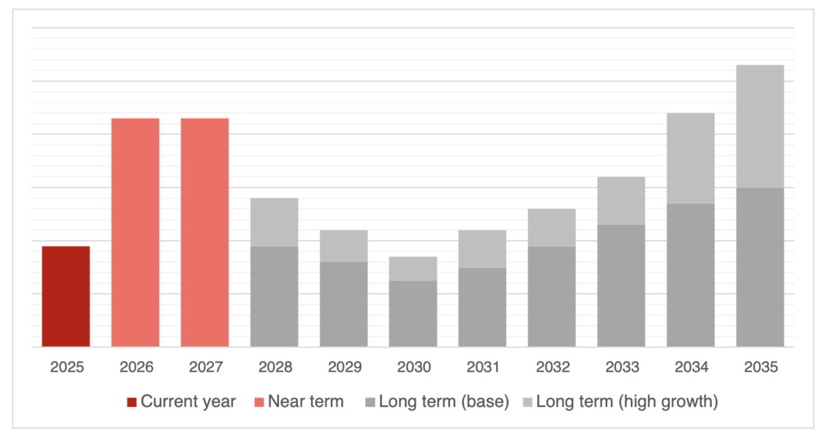 Louisiana’s direct employment in the utility-scale solar industry is projected to rise from 4,000 jobs in 2025 to 8,000 jobs this year and next, and then decline to an average of 4,600 jobs from 2028 to 2035.