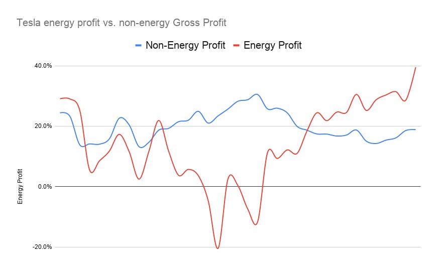 The energy division’s gross margin has consistently exceeded the company’s overall gross margin profits as a whole since the third quarter of 2023.