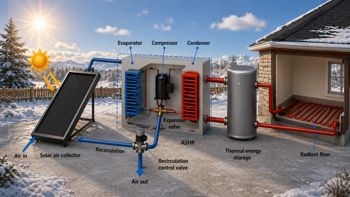 Researchers from the University of Calgary in Canada have investigated the thermodynamic performance of an air-source heat pump (ASHP) integrated with an air-based solar collector (SAC) for radiant floor heating in cold climates.